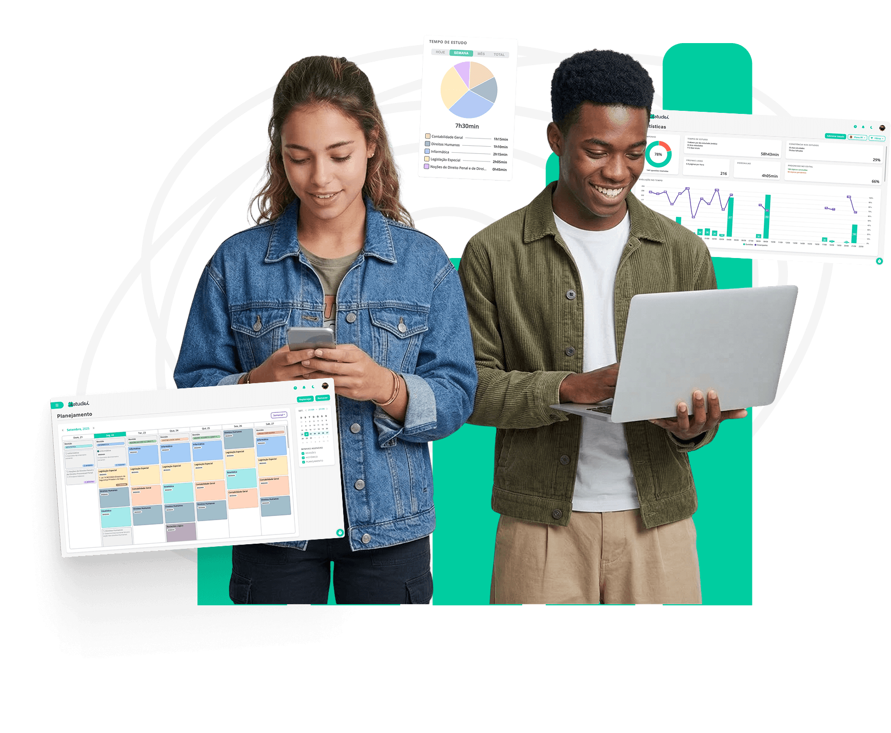 Planeje sua preparação para a prova, acompanhe sua evolução e avance com método usando o Estudei